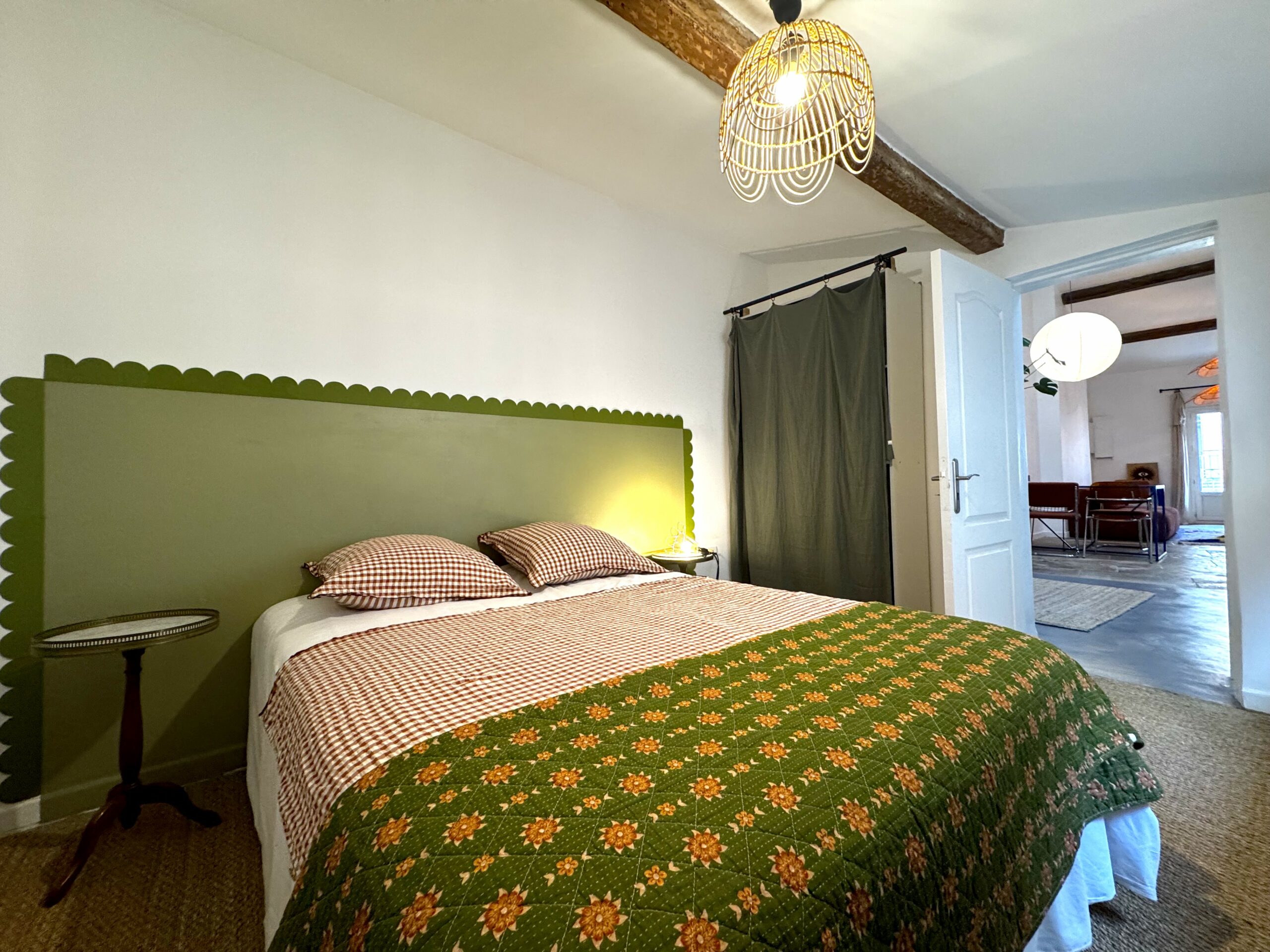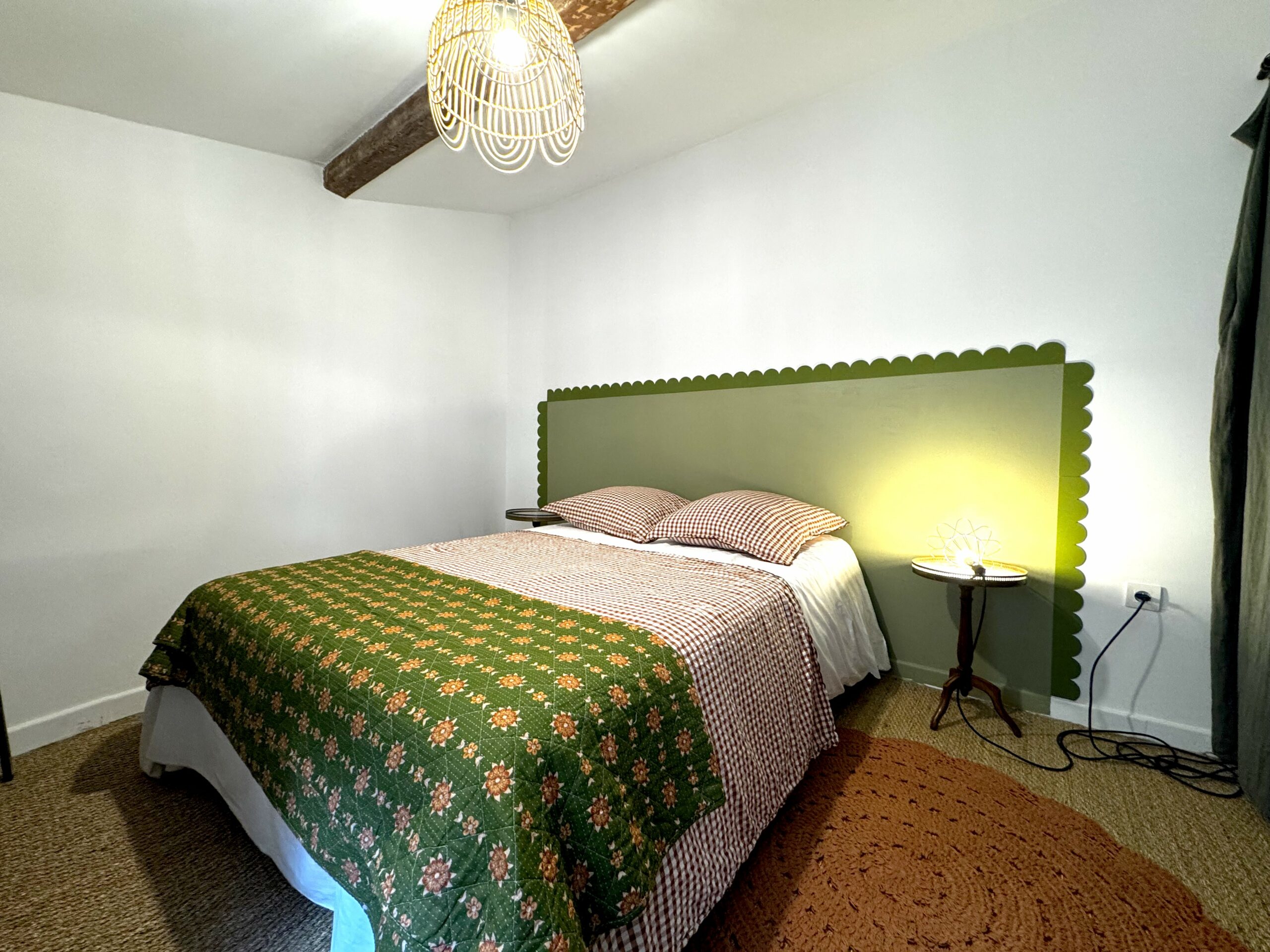 Une chambre confortable avec un lit douillet en 140 et son rangement, ainsi qu’un canapé convertible pour vos amis dans le salon.