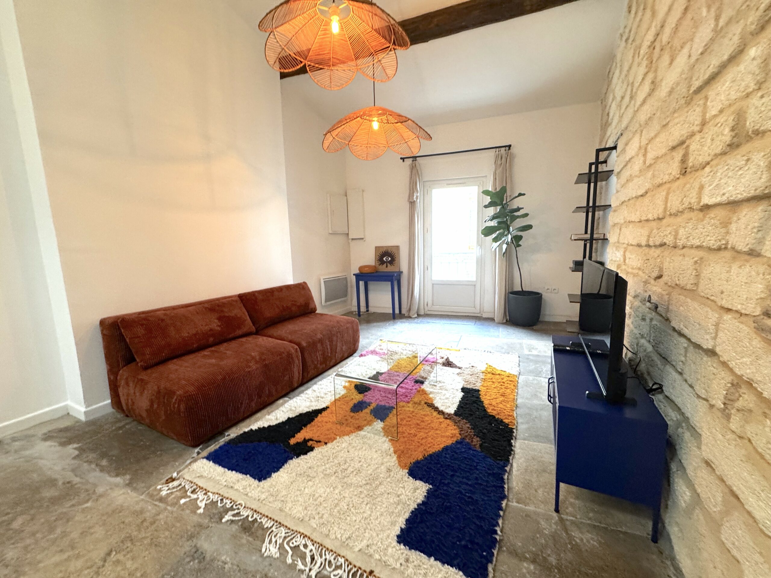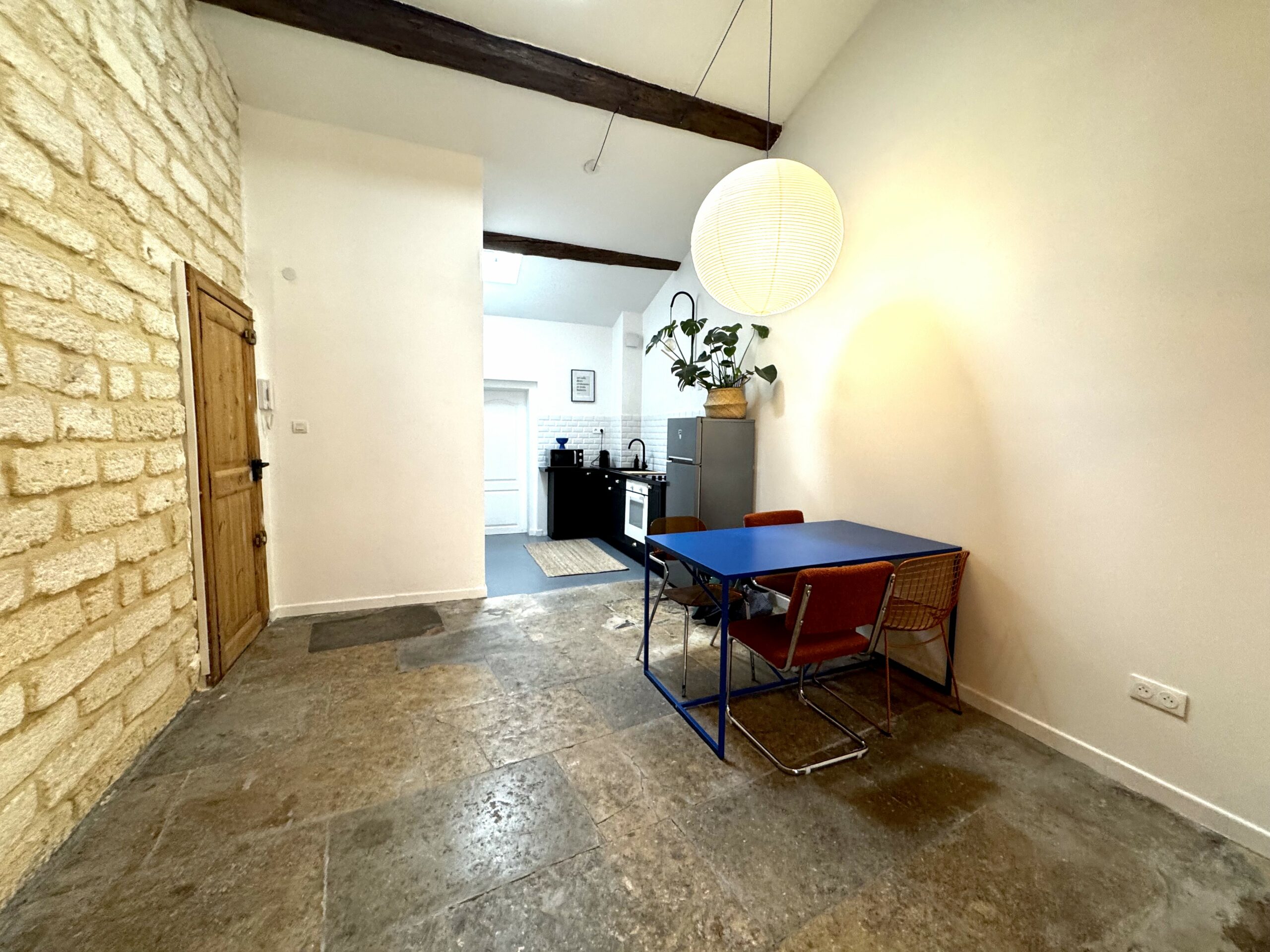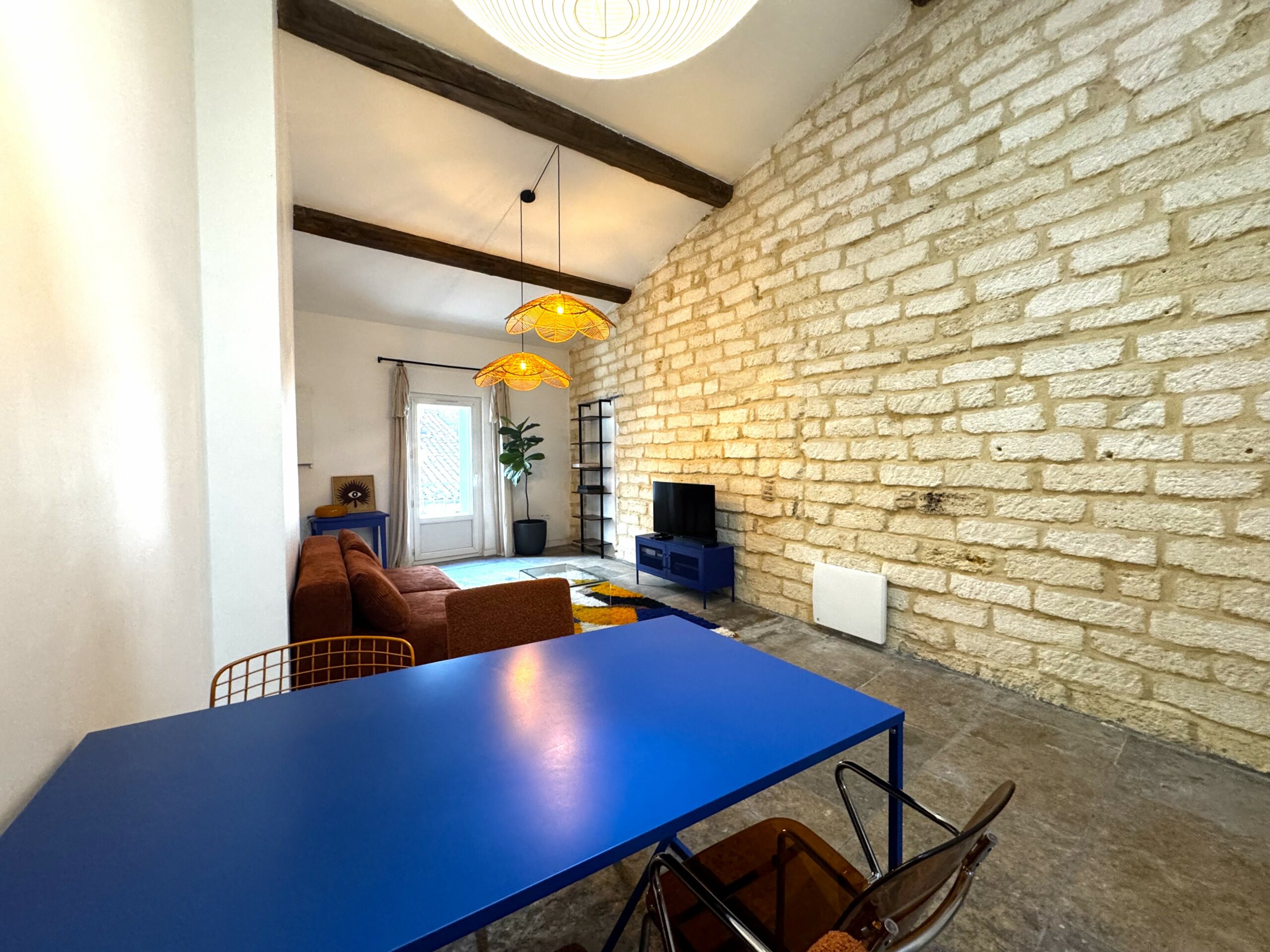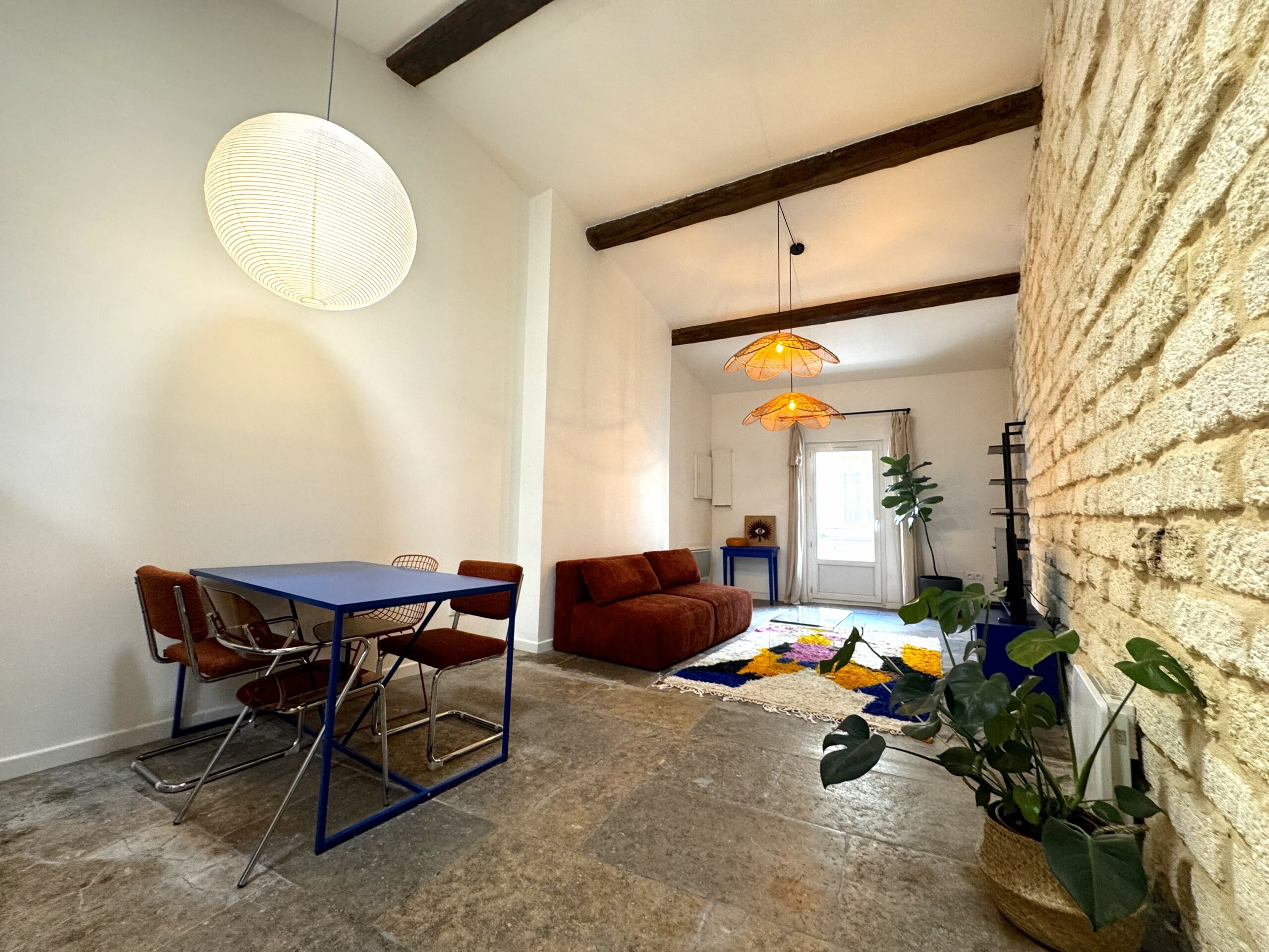 Découvrez ce magnifique T2 qui allie modernité et ancien avec son joli mur en pierre qui contraste avec une décoration haute en couleur, le tout dans un appartement soigneusement rénové offrant tout le confort pour passer un agréable séjour, jusqu’à 4 personnes.