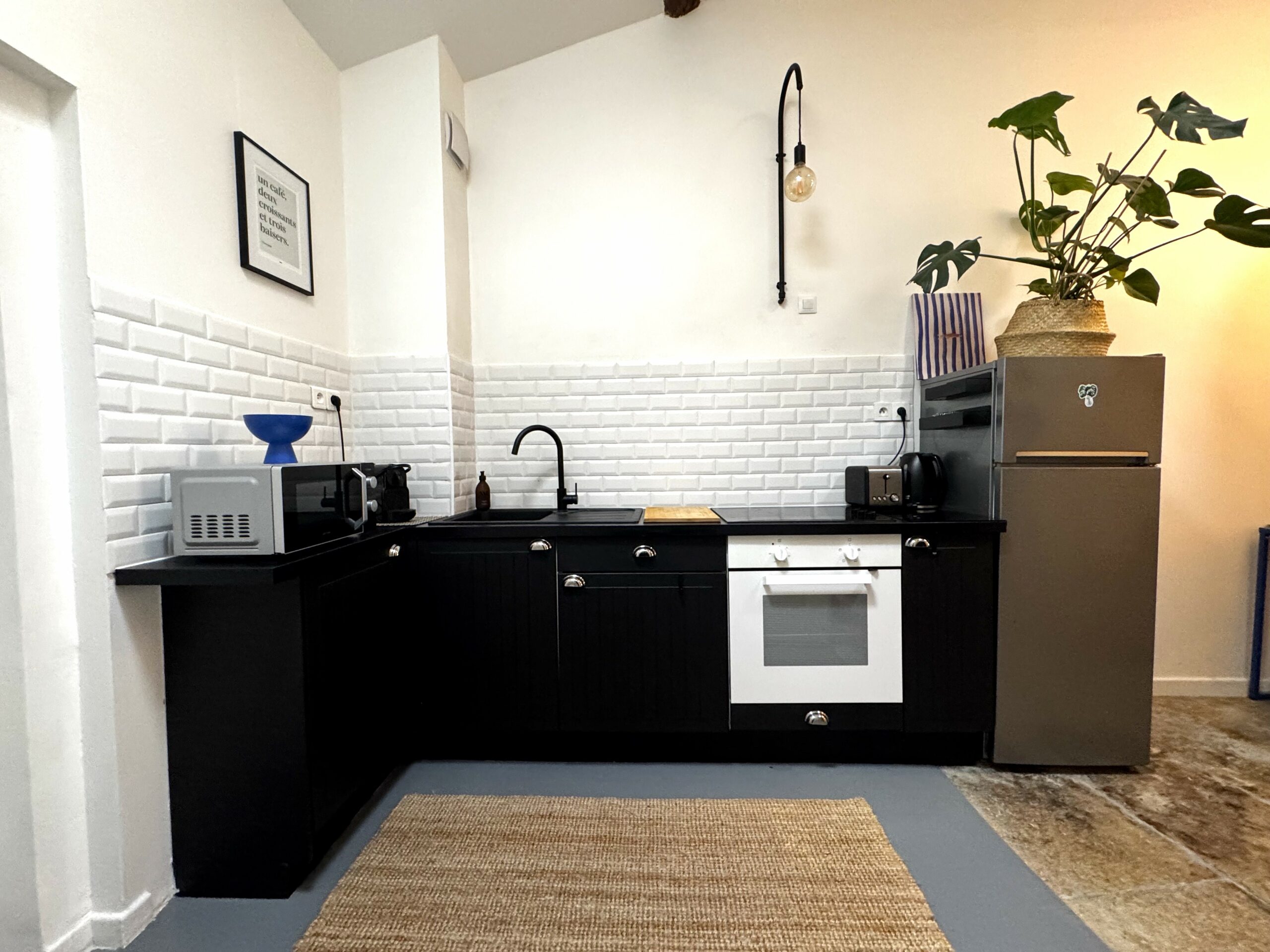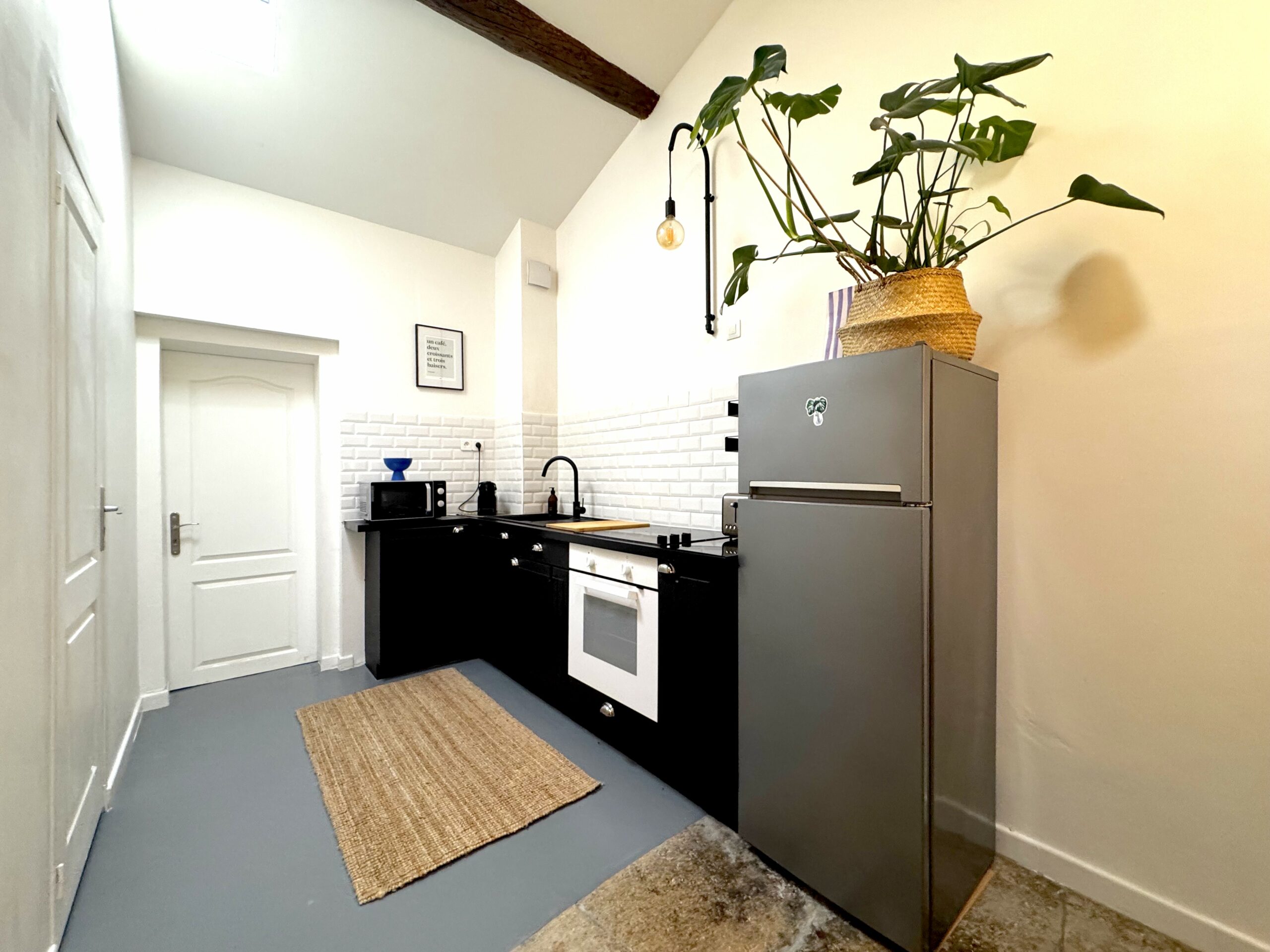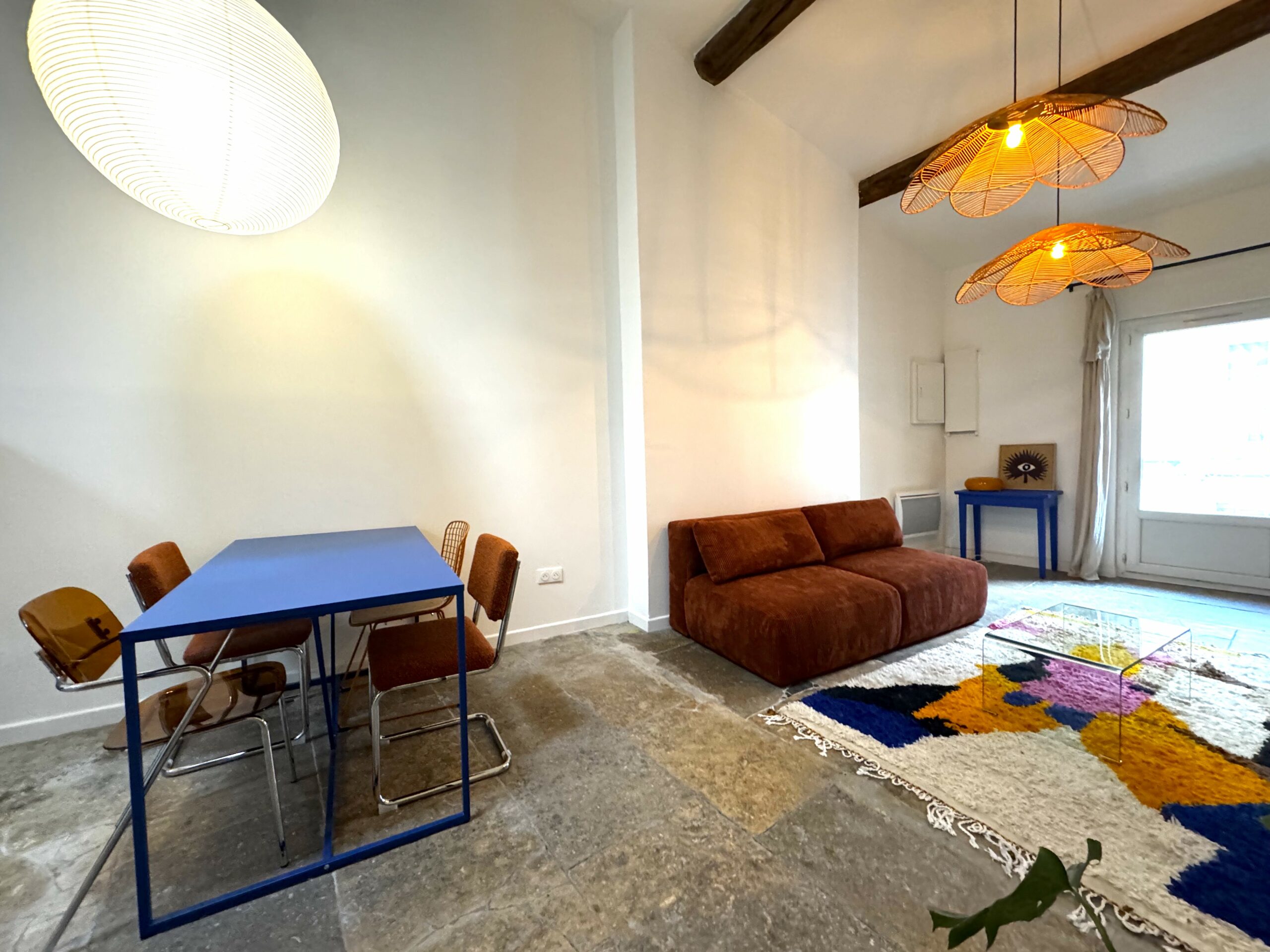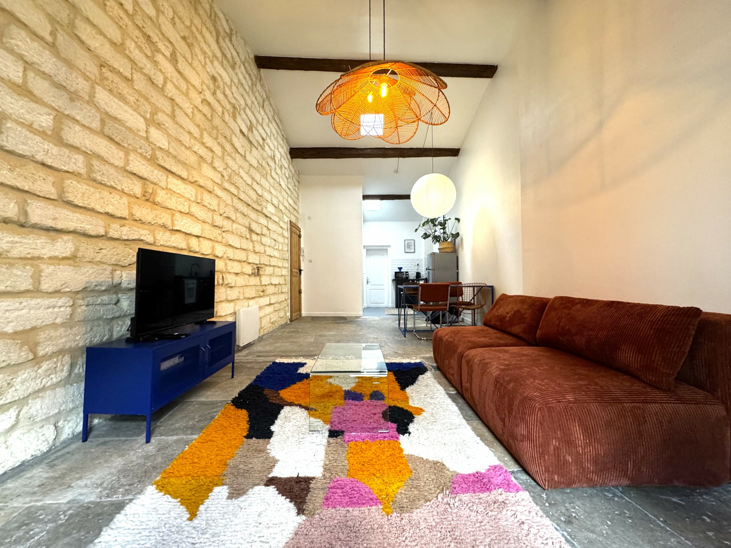 Découvrez ce magnifique T2 qui allie modernité et ancien avec son joli mur en pierre qui contraste avec une décoration haute en couleur, le tout dans un appartement soigneusement rénové offrant tout le confort pour passer un agréable séjour, jusqu’à 4 personnes.