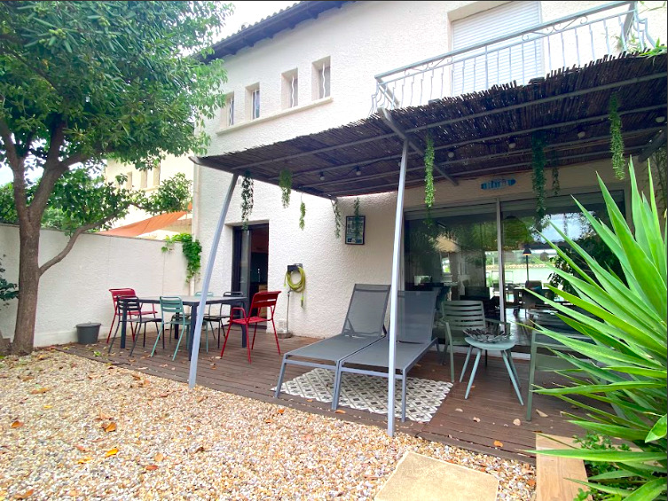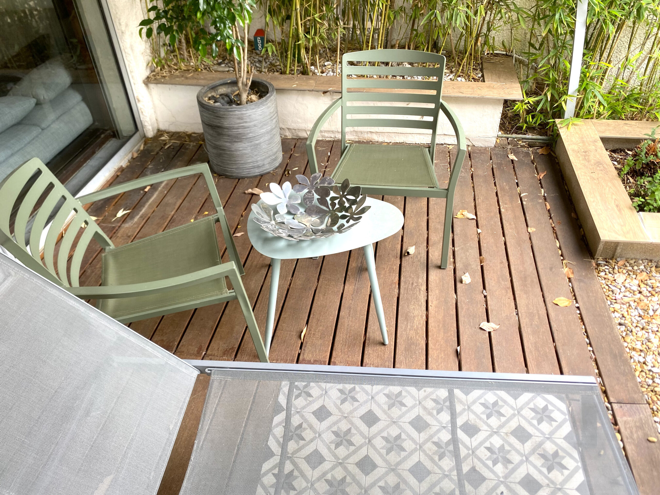 Une seconde terrasse côté jardin, idéale pour profiter des repas plus au frais.