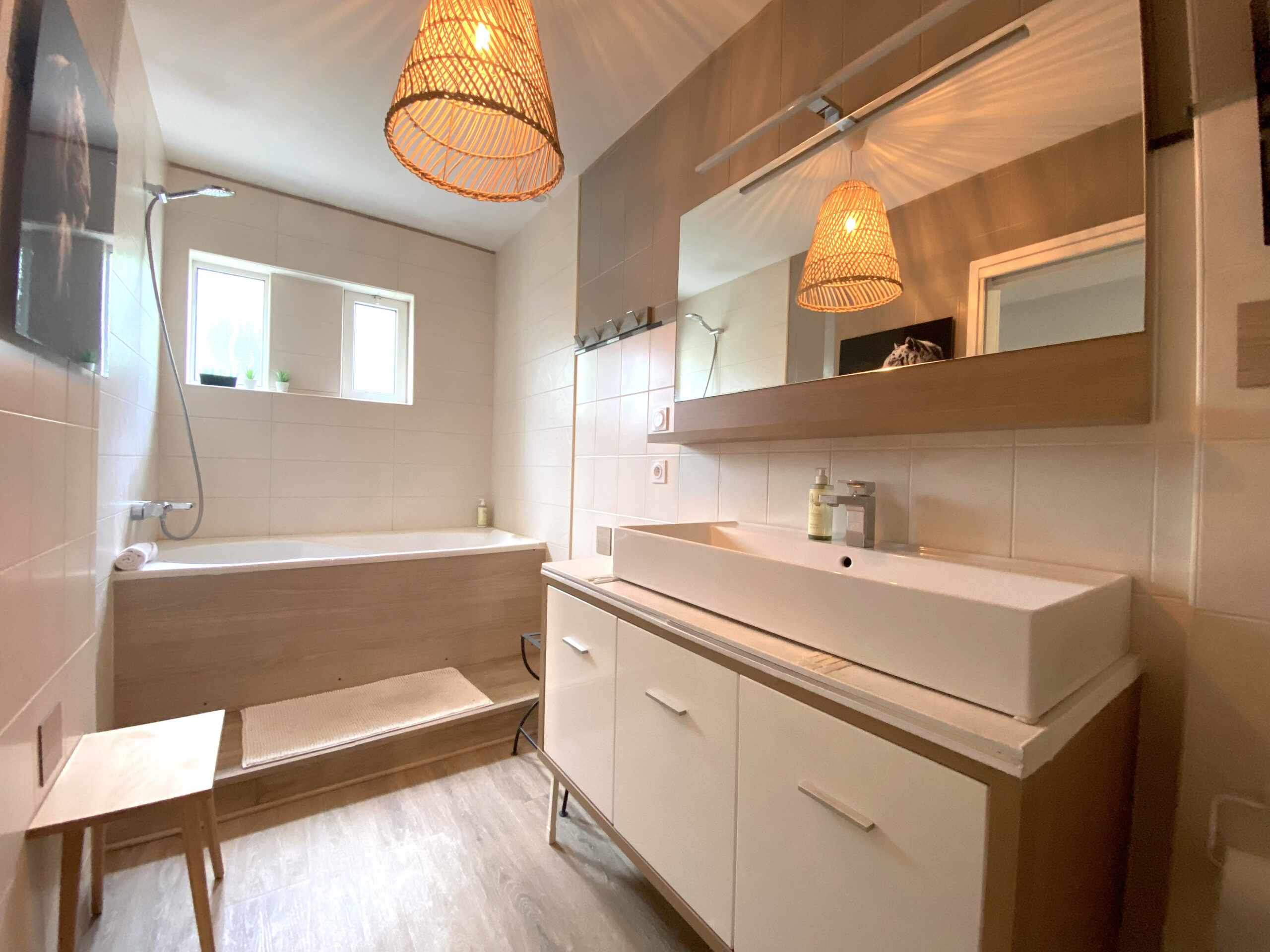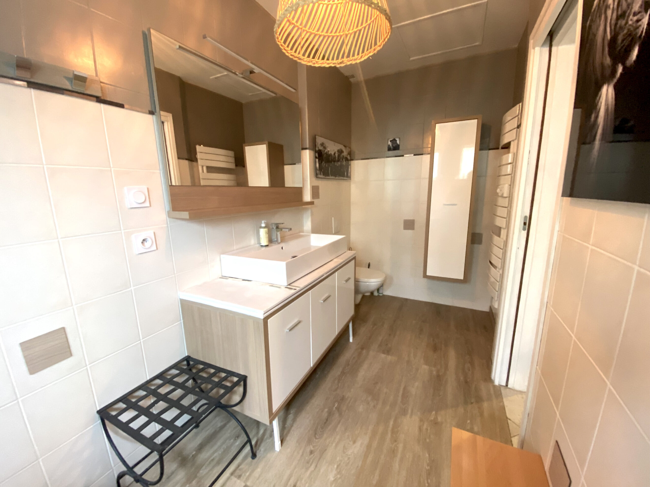 Vous séjournerez dans une villa T3 en duplex, traversante et baignée de lumière, décorée dans un style moderne et épuré.