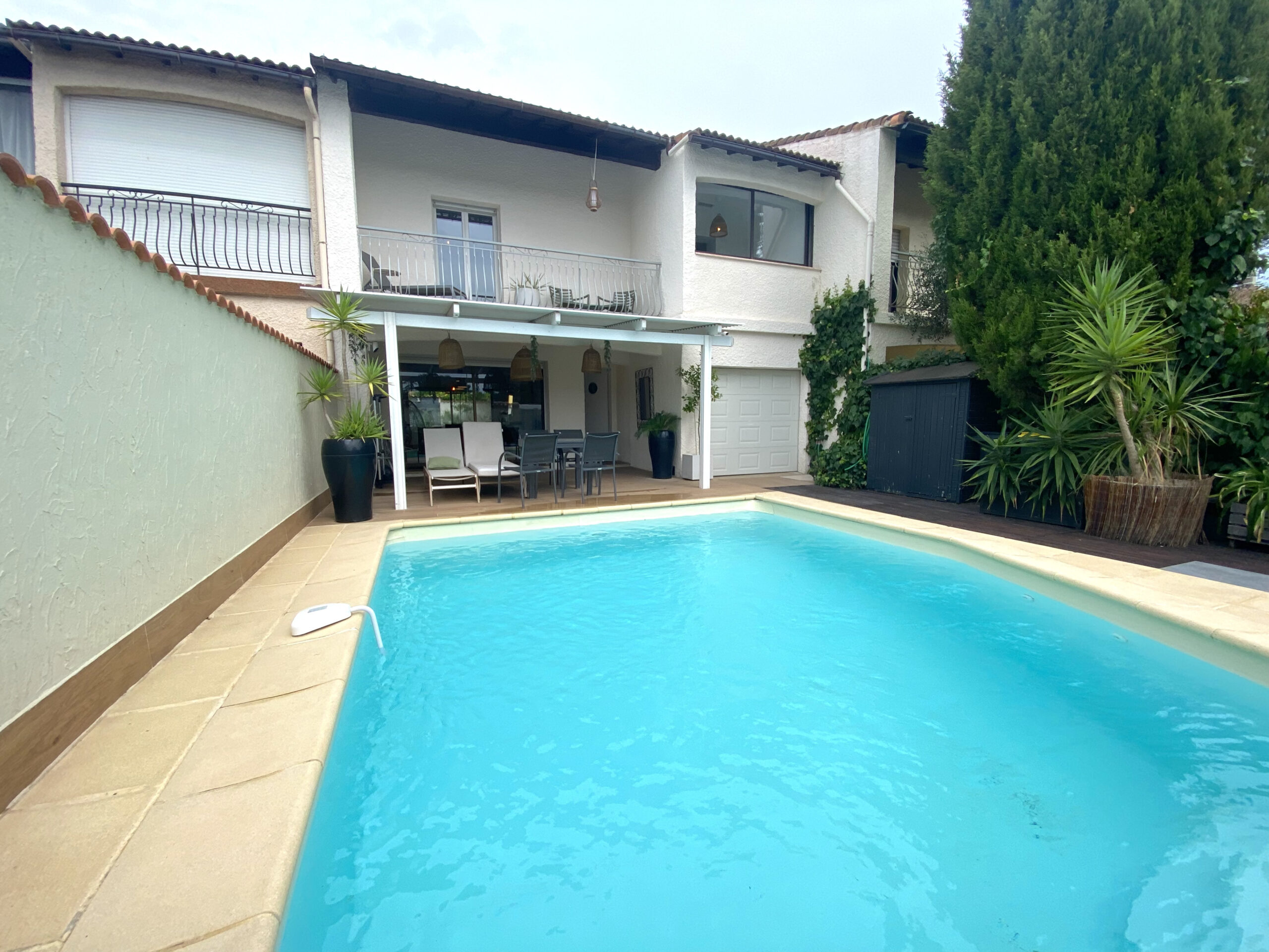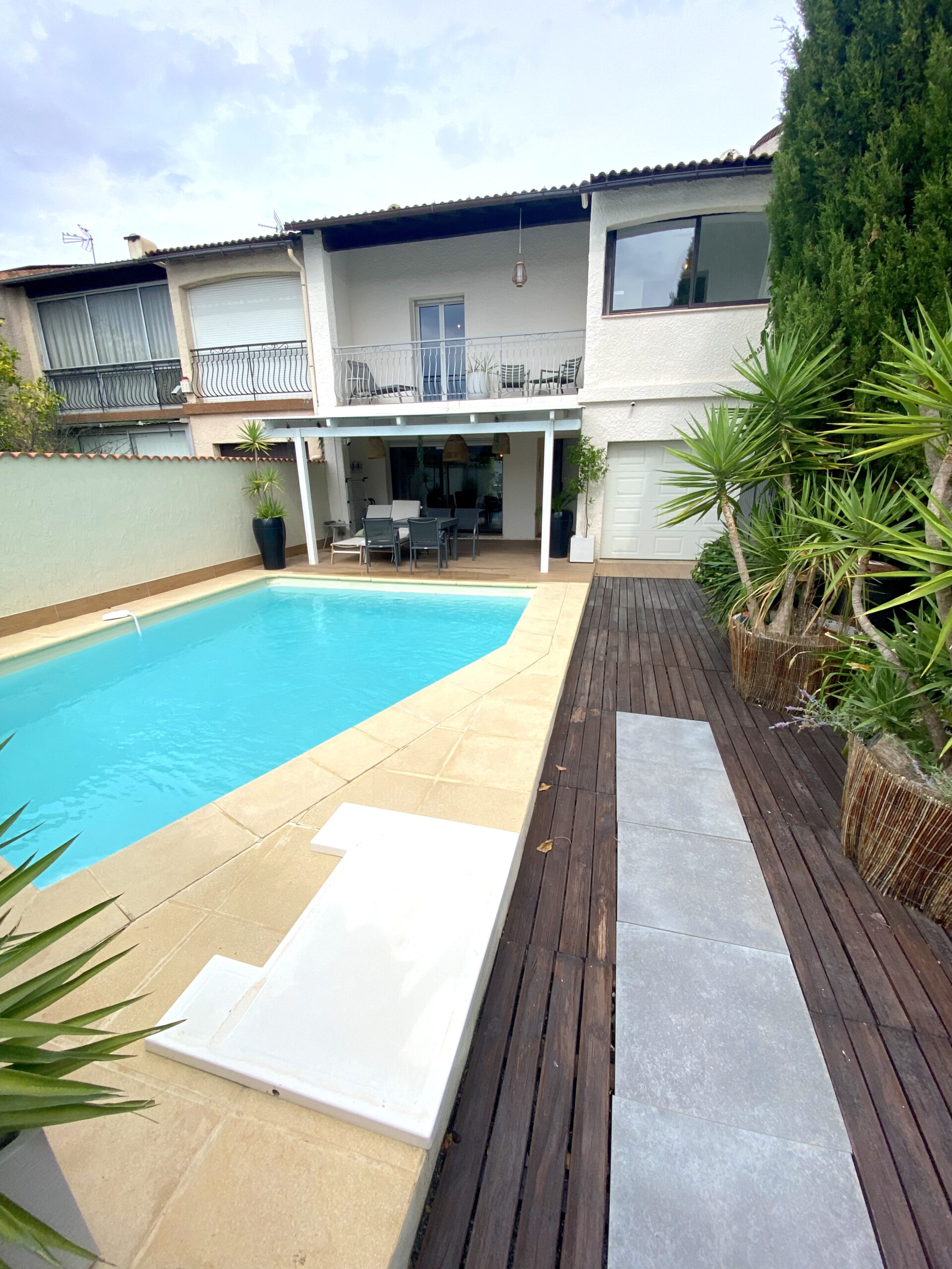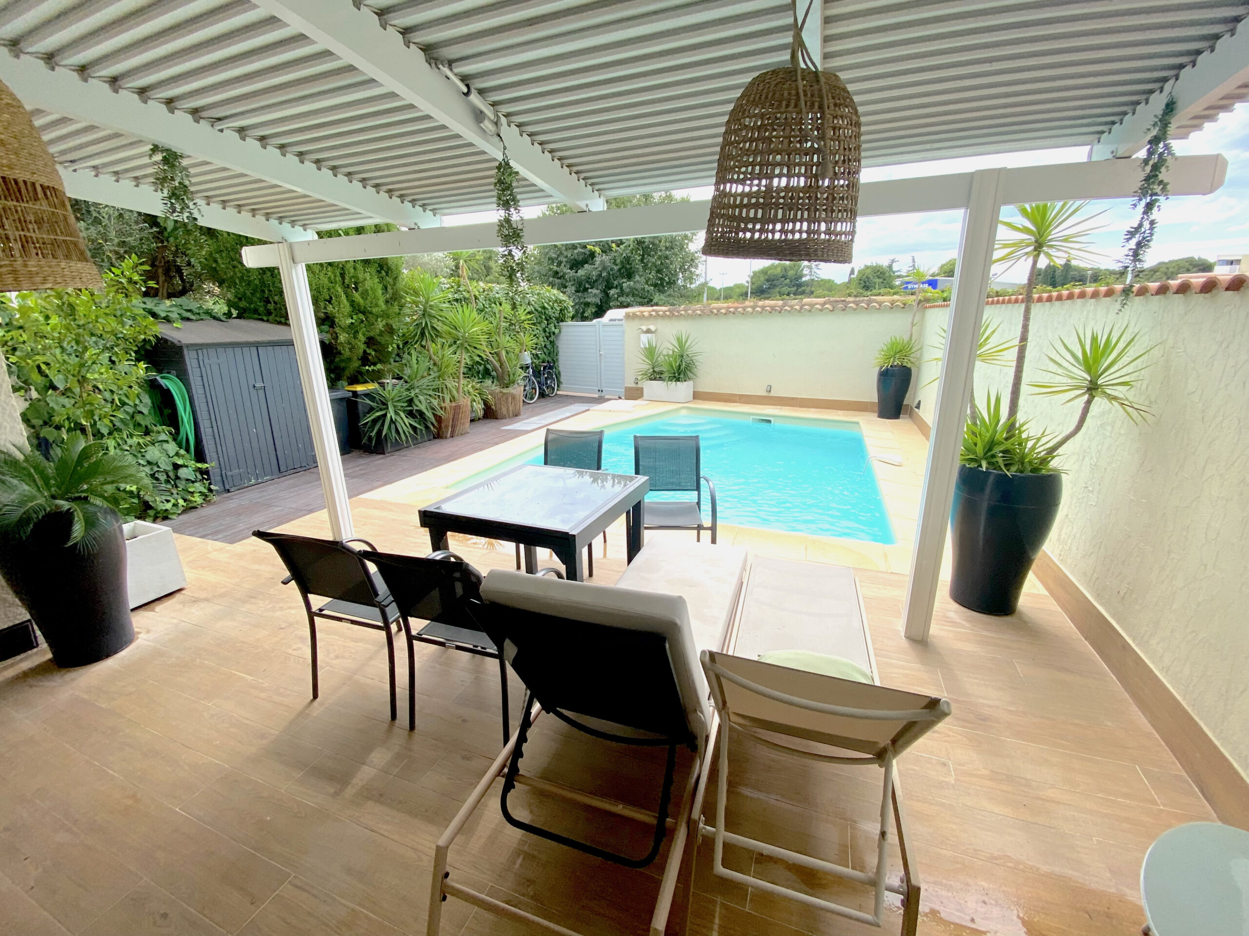 Une première terrasse côté piscine, parfaite pour vos moments détente.