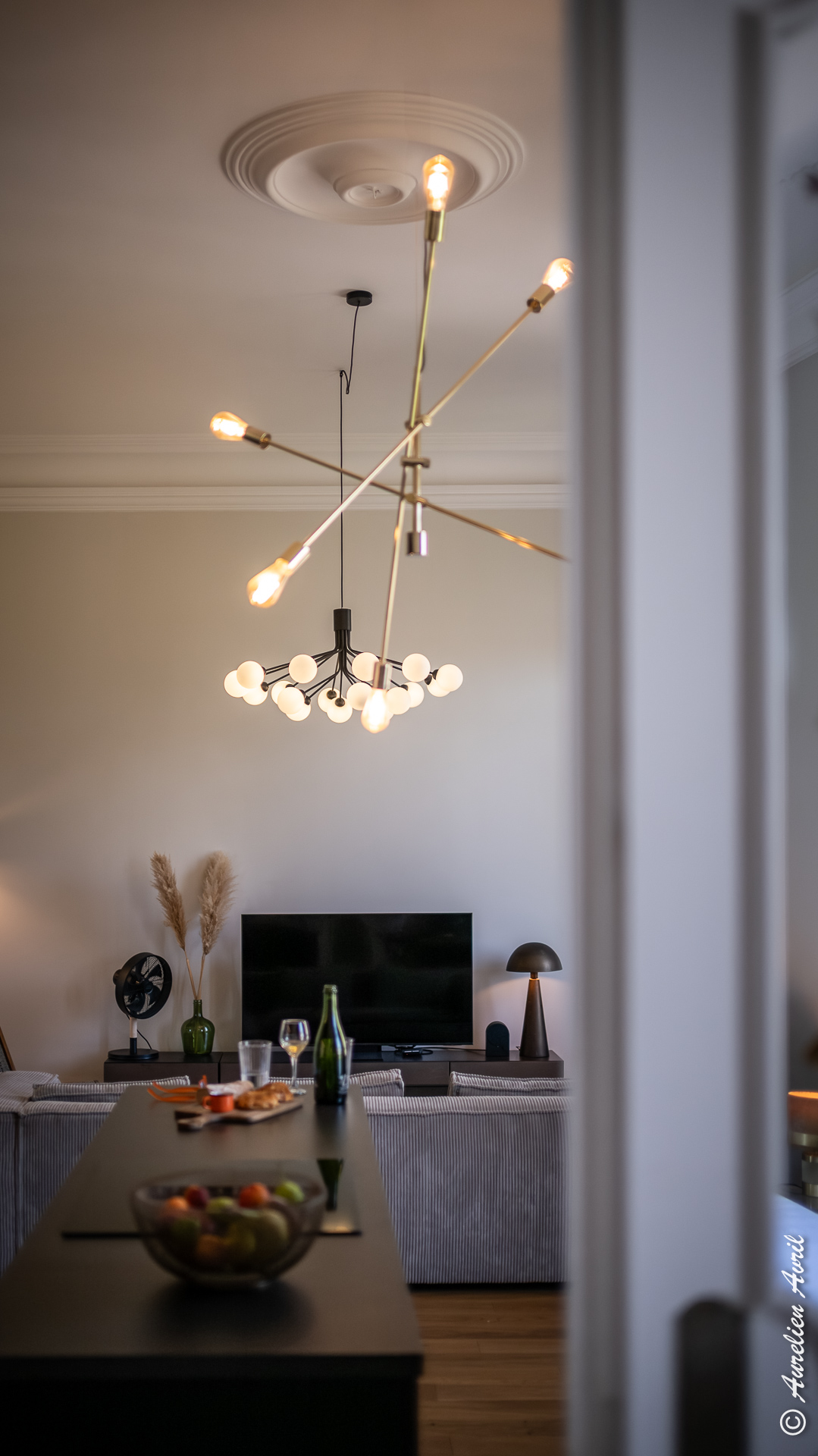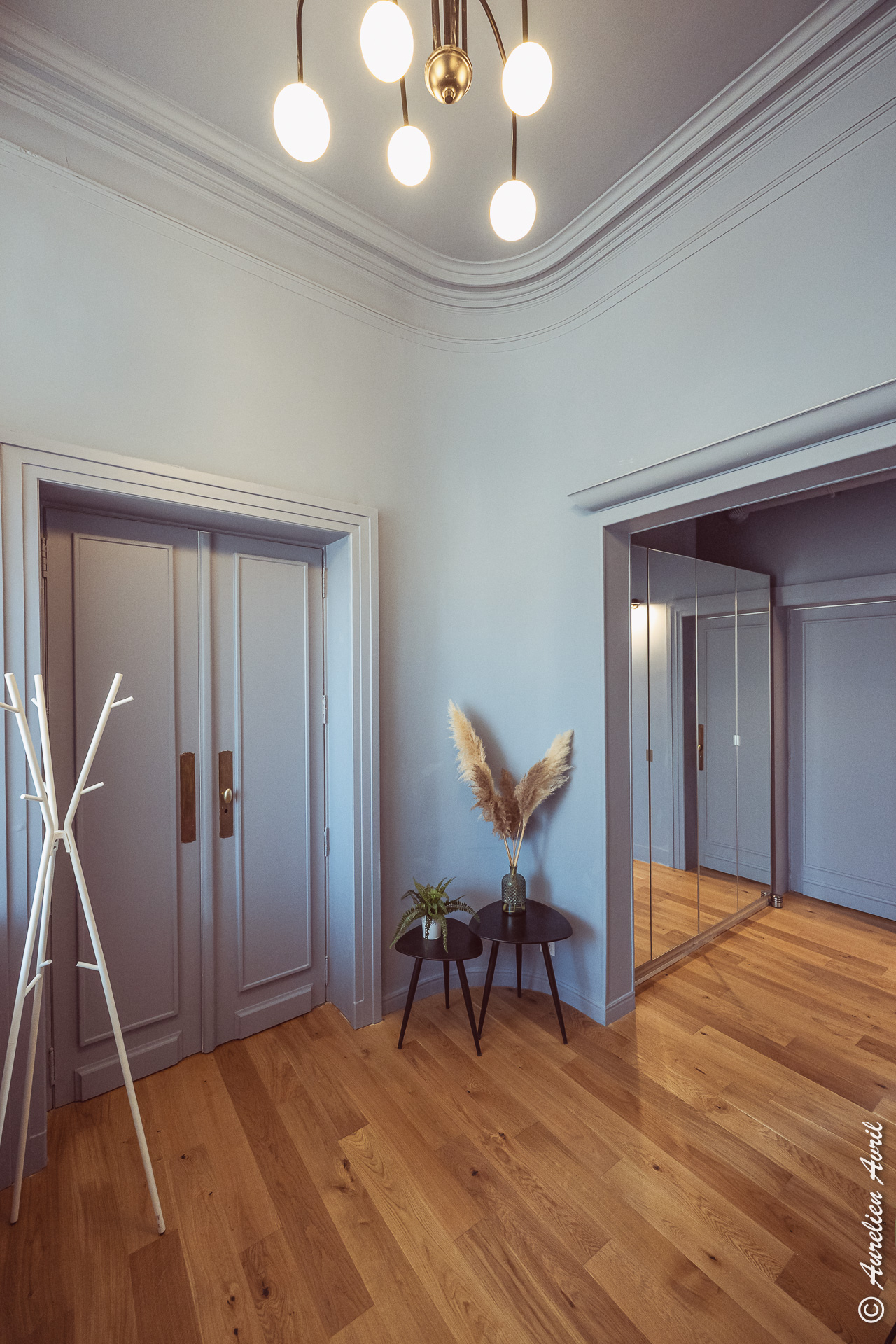 Moulures, belles hauteurs sous plafond, parquet et détails de caractère composent une atmosphère chaleureuse et authentique.