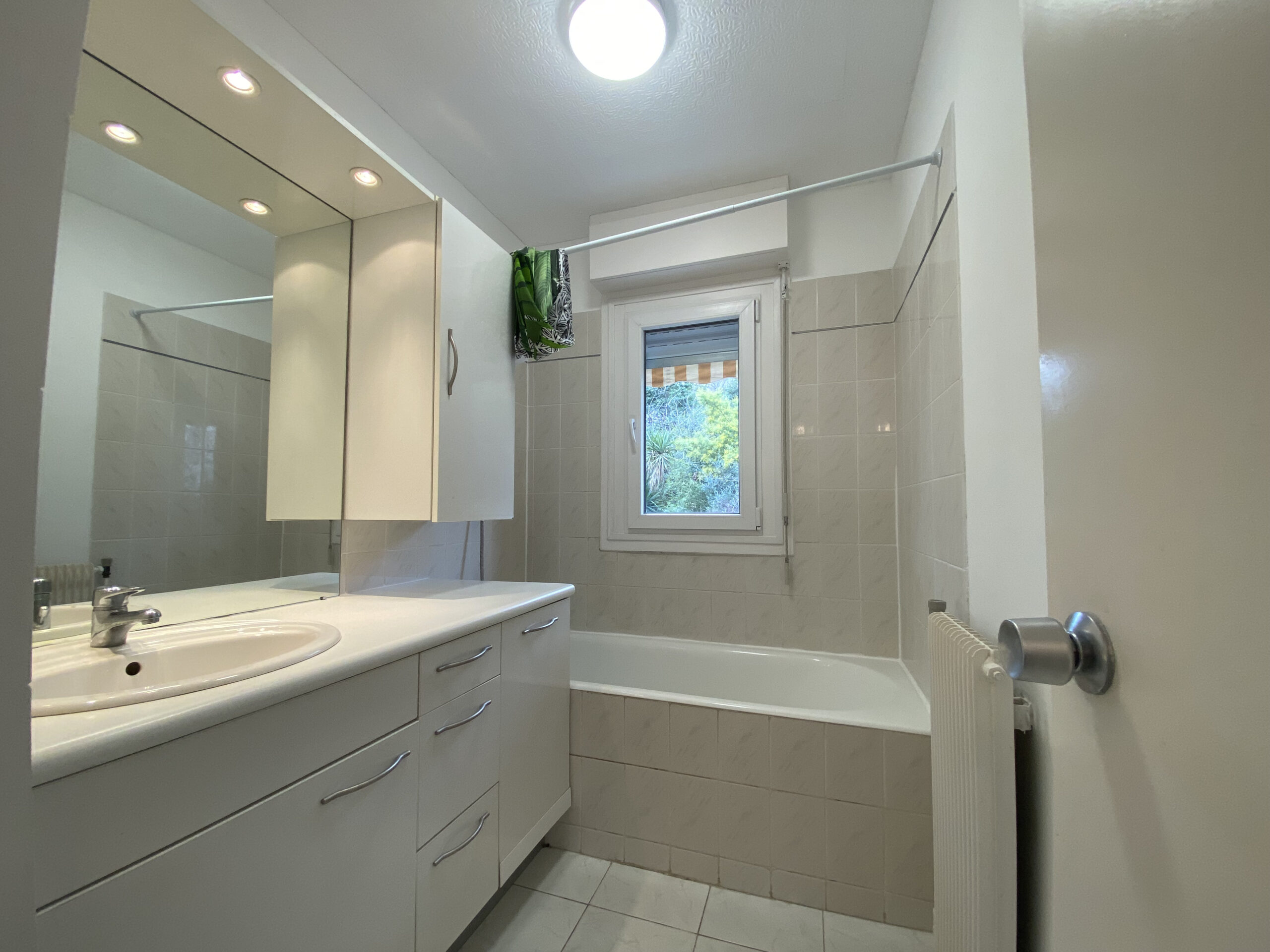Il est également loué avec un garage, une cave en sous-sol, ainsi qu’une place de parking attitrée en extérieur. L’appartement est doté d’une climatisation réversible.