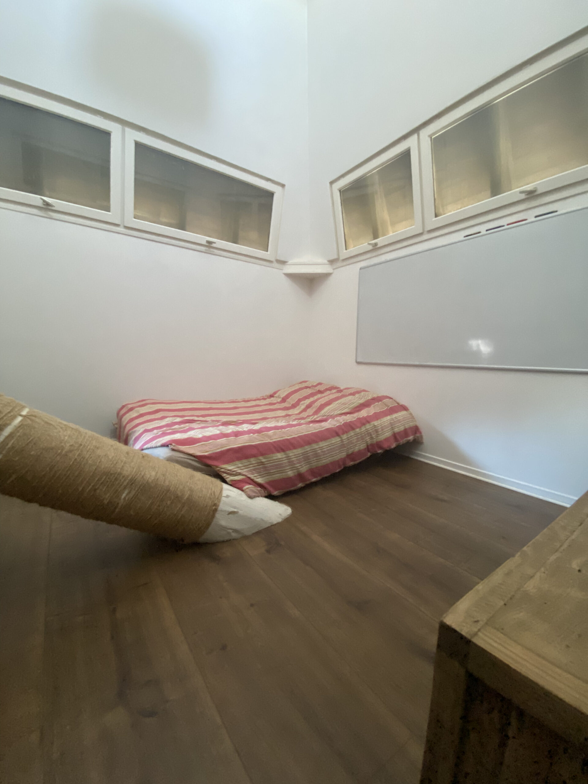 Charges : 110 euros (charges de copropriété, taxe d’ordures ménagères, eau, entretien annuel des climatisations)