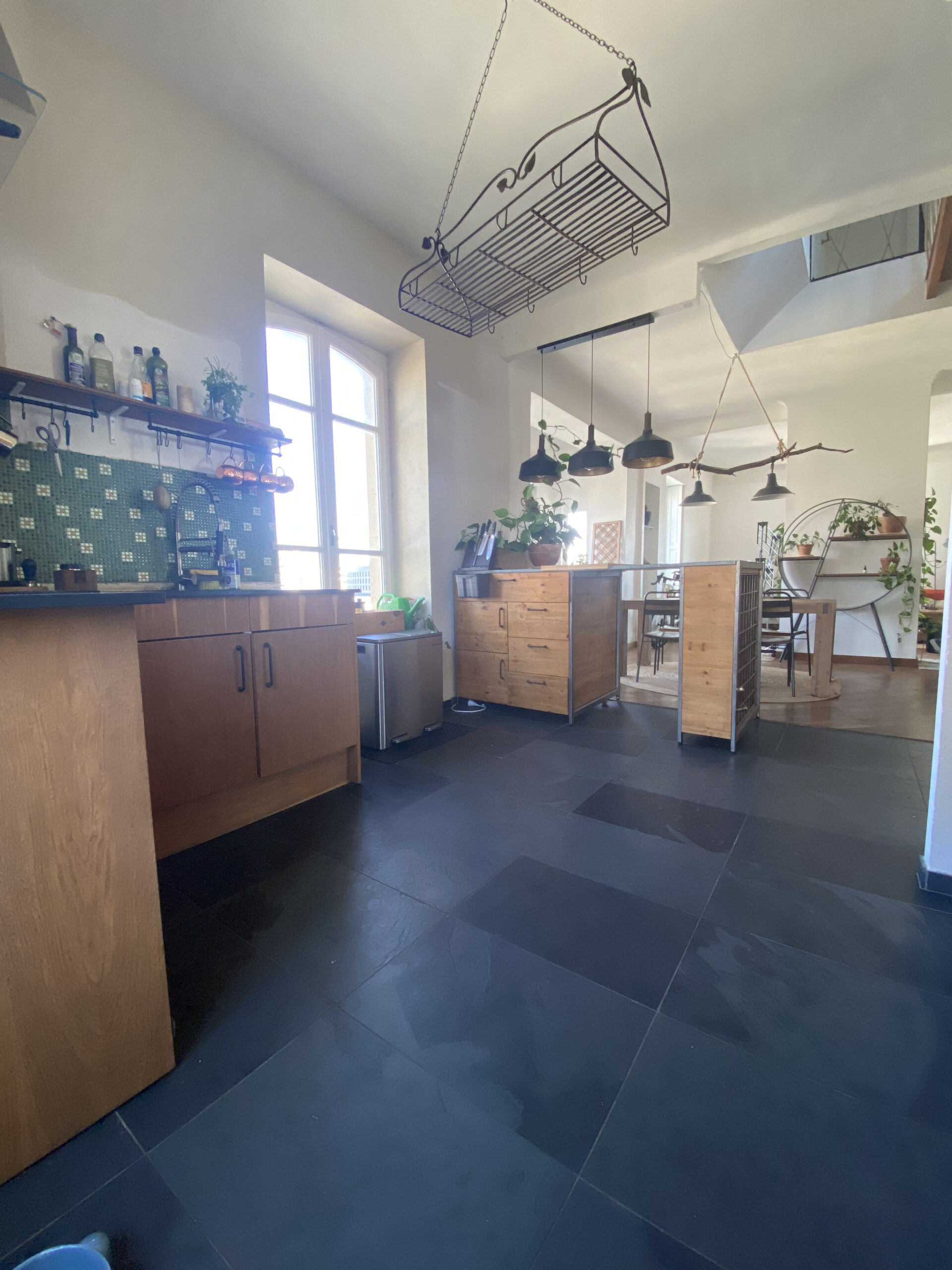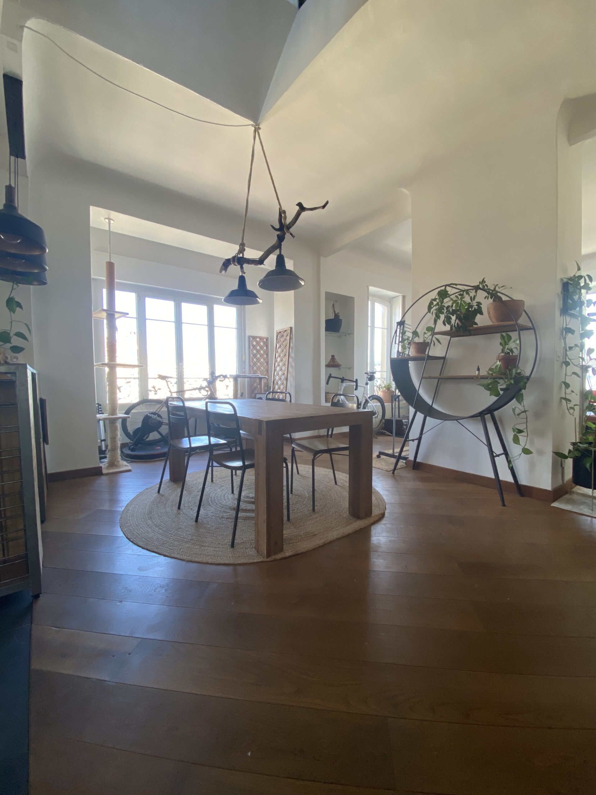 Venez découvrir cet agréable appartement de type T3 de 100 m2 avec ses beaux volumes et sa terrasse avec vue sur les toits. L’appartement est entièrement meublé et équipé.