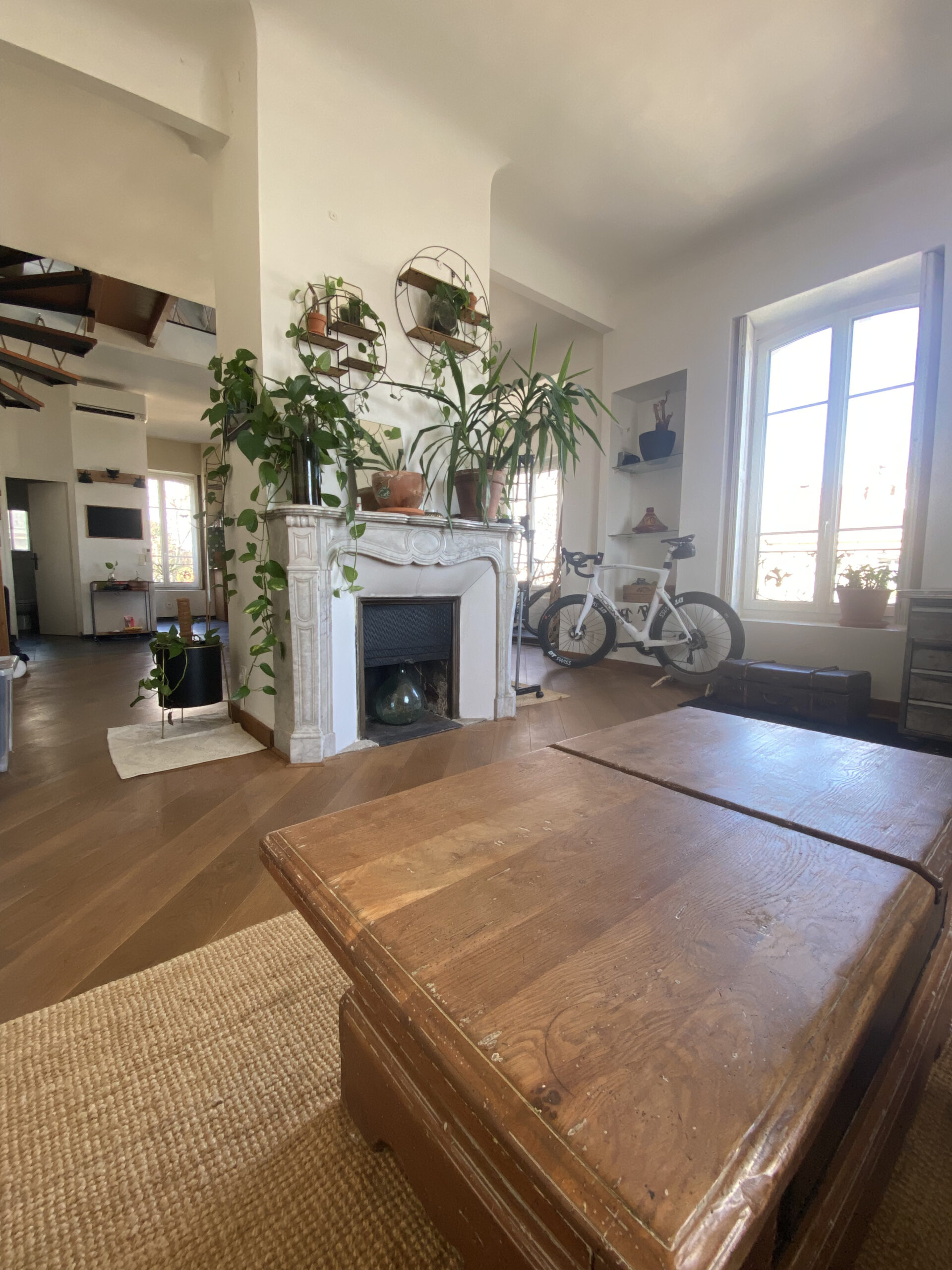 Nous vous proposons à la location ce charmant T3 meublé et climatisé de 100m2. Appartement situé au 3ᵉ étage d’un bel immeuble, dans le quartier Nouveau Saint-Roch. Ce logement atypique en duplex offre de beaux volumes et une disposition agréable. Entièrement rénové, cet appartement offre de belles prestations alliant le cachet de l’ancien mis en valeur par des matériaux bruts (bois, acier, ardoise).